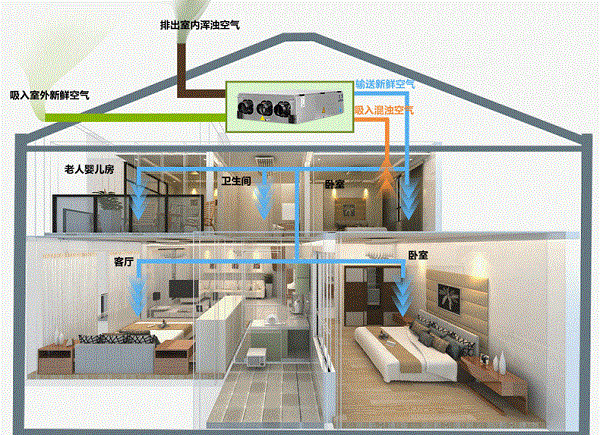 現(xiàn)在的別墅都要有地下室,由于地理環(huán)境位置的關(guān)系,地下室非常潮濕,空氣質(zhì)量也非常的差,常人無法長時間生活。雖然安裝了空調(diào),但普通空調(diào)也只能解決溫度問題,空氣只能在室內(nèi)循環(huán)。
