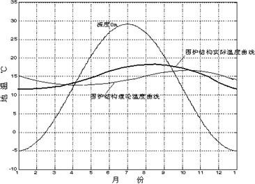 圖2某工程圍護(hù)結(jié)構(gòu)溫度全年變化的示意圖