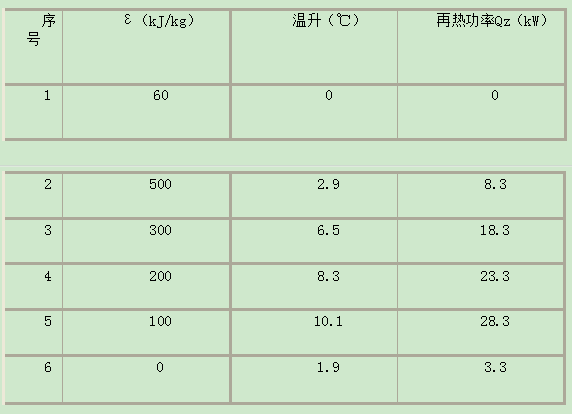 表2熱濕比ε和最小再熱量的關(guān)系