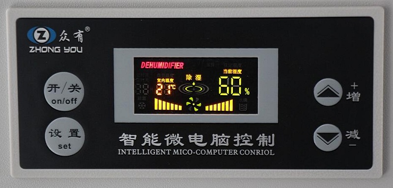 它體現在哪?首先要自動感應空氣濕度,全天智能設定除濕值,讓空氣濕度始終保持在適當范圍。它的微電腦控制面板上,純物理按鍵操作,輕松控制除濕。