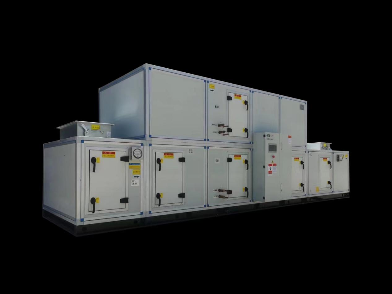 ZJRHF50直膨式組合式空調(diào)箱機(jī)組具備凈化調(diào)溫除濕、加濕;凈化升降溫除濕、加濕;凈化通風(fēng)、加熱等三種功能,用戶可根據(jù)需要選擇其中任意一種功能。為了避免夏季相對濕度過大,該組合式空調(diào)箱內(nèi)設(shè)置了空氣在熱段,在室內(nèi)相對濕度過大時(shí)開啟。