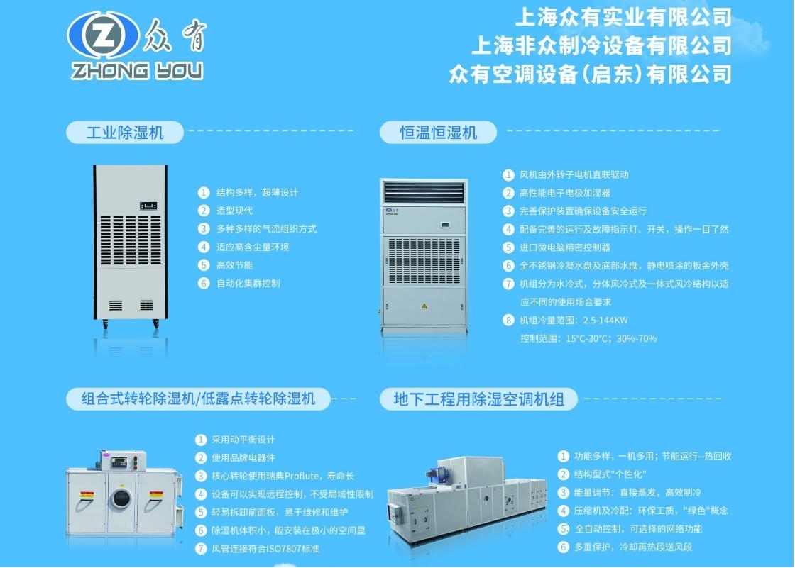 眾有實業始終堅持"技術立企"發展戰略,不斷加大研發投入,從而完成技術上的持續革新。基于雄厚的研發背景,截至2022年底,眾有實業擁有工業空調及除濕加濕授權技術多大一百多項,我們可以設想在這種環境下誕生的產品,品質一定更有保障。