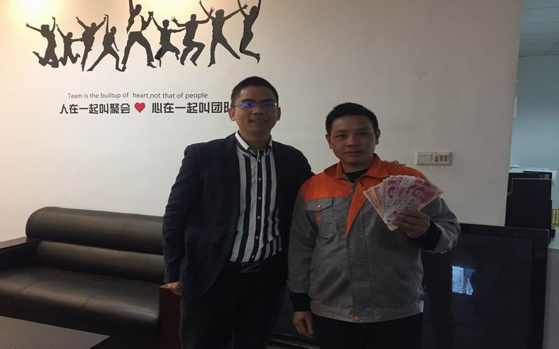 銷售部員工許祥進入公司三個月左右,工作兢兢業業、勤快誠懇,主動見客戶,跑客業務、不言累、不畏險、始終堅定不移的做市場、做銷售、做客戶,功夫不負有心人,累水汗水與業績達成正比,在10月份以第一名的銷售額榮獲冠軍寶座。能攻下大單,難能可貴,充分展現出了一個優秀銷售員平時善于鉆研學習,沉心靜氣跑業務,不急不躁、不等不靠做業務的優秀品質,這樣的工作態度是我們每個人學習的榜樣。最后由郭總給許工給予了200紅包獎勵。
